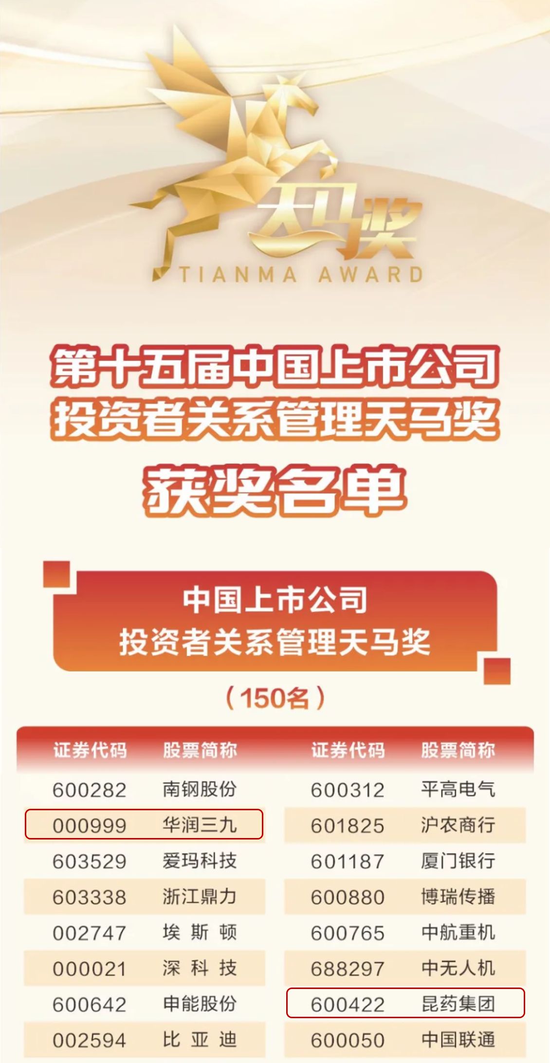¡°ÌìÂí½±¡±ÓÚ2009Ä꿪°ì£¬ÊǺ£ÄÚÖ÷Á÷ýÌå×îÔç¾Û½¹×ÊÔ´Êг¡Í¶×ÊÕß¹ØÏµÖÎÀíÁìÓòµÄÆÀÑ¡Ô˶¯£¬ÔÚÖйú×ÊÔ´Êг¡¾ßÓÐÆÕ±éµÄÓ°ÏìÁ¦¡£±¾½ìÆÀÑ¡´ÓͶ×ÊÕß¹ØÏµÎ¬»¤¡¢²ÆÎñÖÊÁ¿¡¢ÊÐÖµÖÎÀí¡¢Í¶×ÊÕ߻ر¨¡¢ESGÌåÏÖÎå´óά¶È£¬¶ÔÉÏÊй«Ë¾¾ÙÐÐ×ÛºÏÐÔÆÀ¼Û¡£´Ë´Î»ñ°äÉùÓþ½±ÏÌåÏÖÁË×ÊÔ´Êг¡¶ÔÈËÉú¾ÍÊDz©ºÍÀ¥Ò©¼¯ÍŸßÖÊÁ¿Í¶×ÊÕß¹ØÏµÖÎÀí¡¢¸ßºÏ¹æÐÅÏ¢Åû¶¡¢¸ßЧ¹«Ë¾ÖÎÀíˮƽµÄÒ»¶¨¡£