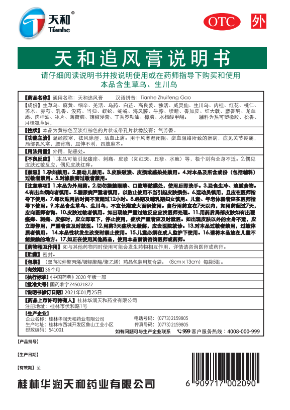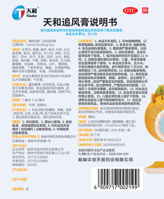 天和追风膏(热可塑橡胶型)